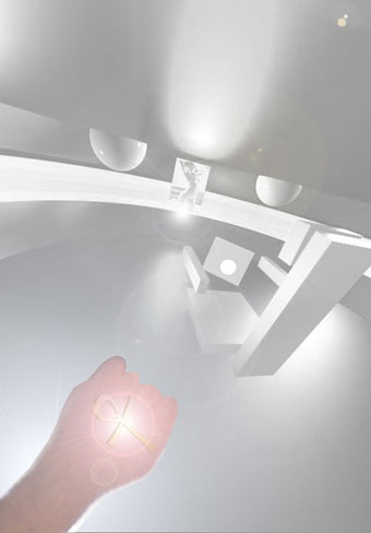 a escapar através da carne translúcida, o fulgurante géon soládico