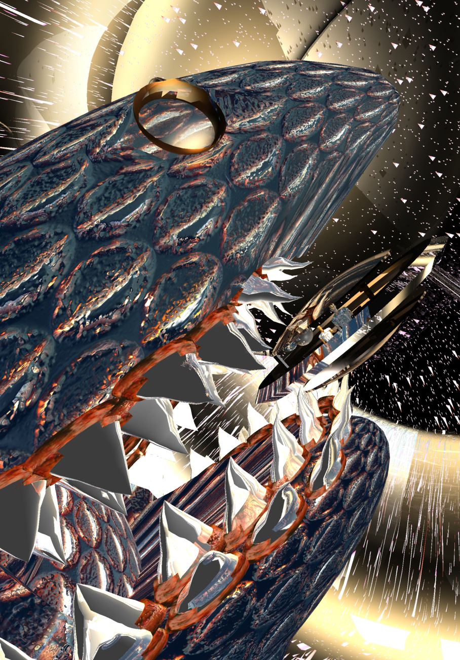 oégeas Mésona, coa Trigonodon cruel e os cosmoscafos no encalço.