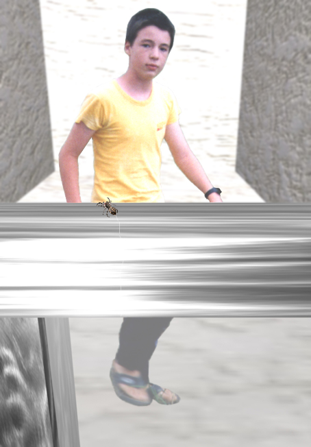 na estranha face, as posições dos palpos e do corpo listrado