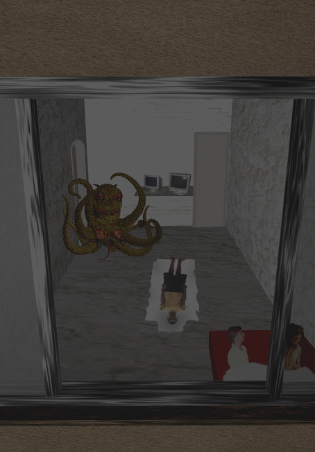 o monstro se ocelar no reflexo!... Tem de haver um reflexo! Em