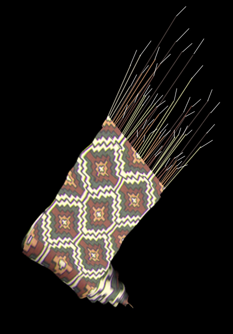 fios puxados por agulhas móveis tecem uma das beiradas.