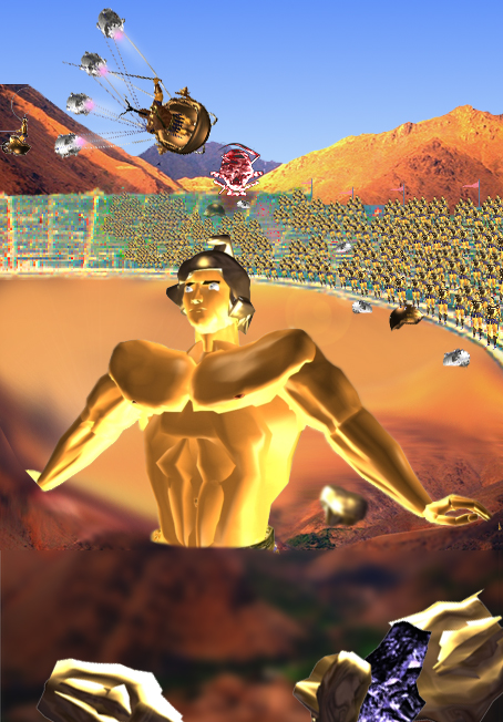 colo táureo, altivo e nobre. Frente e costas da couraça fumegante