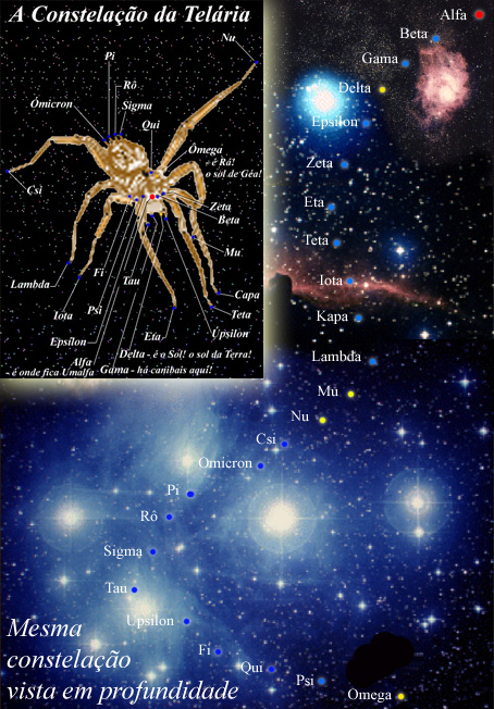 e Epsílon, no ocelo menor frontal direito; e Delta (o Sol! coa Terra!)