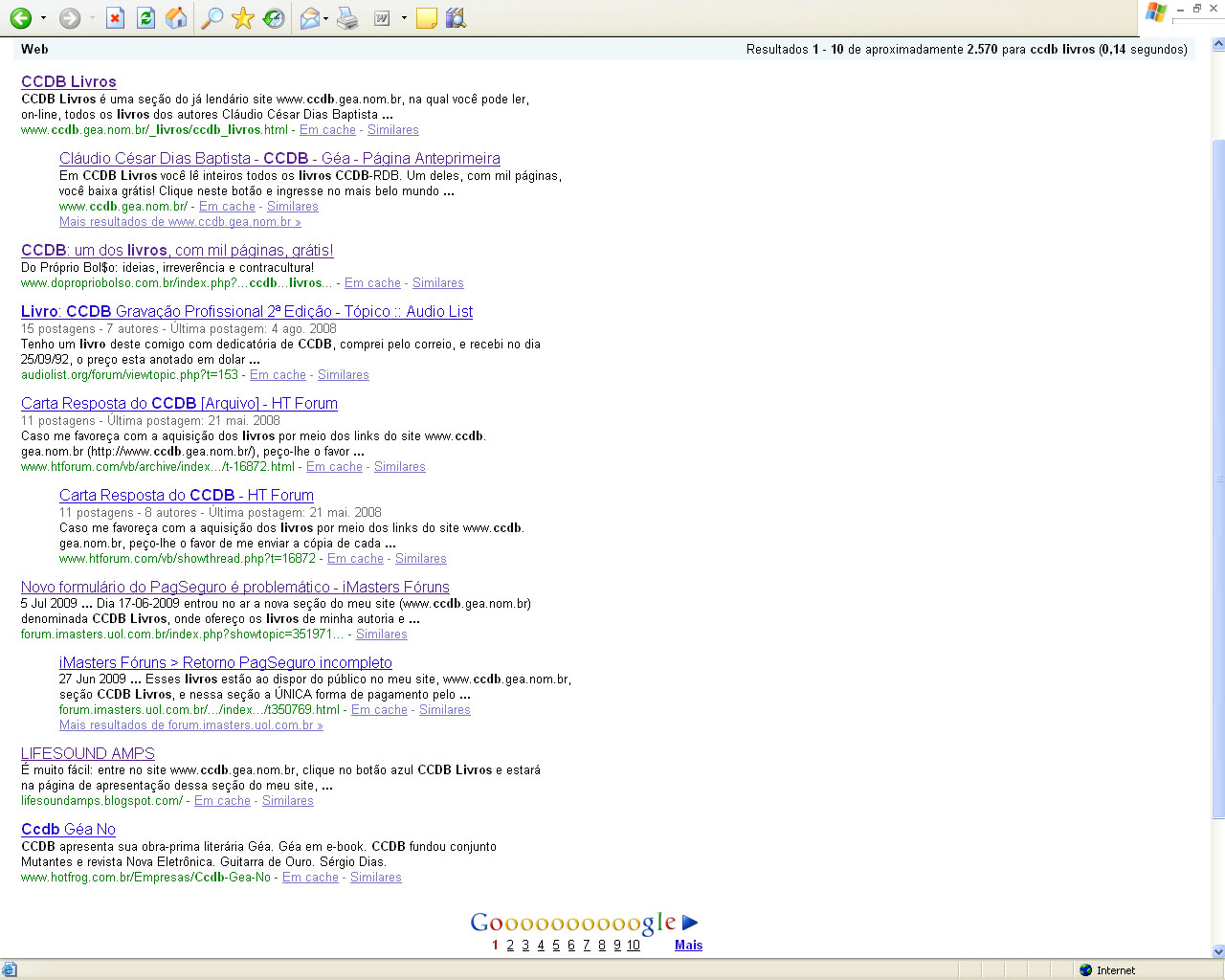 CCDB escreveu Géa, Geínha, )que( e CCDB - Gravação Profissional (este em co-autoria com seu filho RDB). Todas essas obras você pode ler INTEIRAS, COMPLETAS, aqui mesmo, em CCDB Livros. Na seção tradicional do site www.ccdb.gea.nom.br você tem imensa quantidade de informação sobre todos os livros de CCDB e RDB. Cada obra é auto-suficiente - não é preciso ler uma para entender a outra. Todas as capas de todos os livros foram criadas por CCDB.