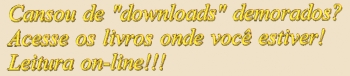 Se, mesmo coa velocidade da leitura on-line, você não gosta de ler em computador e inda não adquiriu um aparelho “e-book” (ou um iPhone, um iPod ou um iPad da Apple), tão prático quanto o livro impresso, pense nisto: grandes obras merecem ser lidas em qualquer meio que se apresentem. Eis grandes obras que só se podem ler aqui!