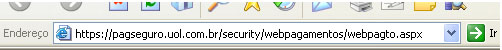 O site do PagSeguro é um site de conexão segura! Veja no campo de endereços do browser, na ilustração acima, que está escrito “https” e, não, o simples “http” - é esse endereço que aparece quando você clica o botão COMPRAR e se abre a janela com o formulário do PagSeguro.