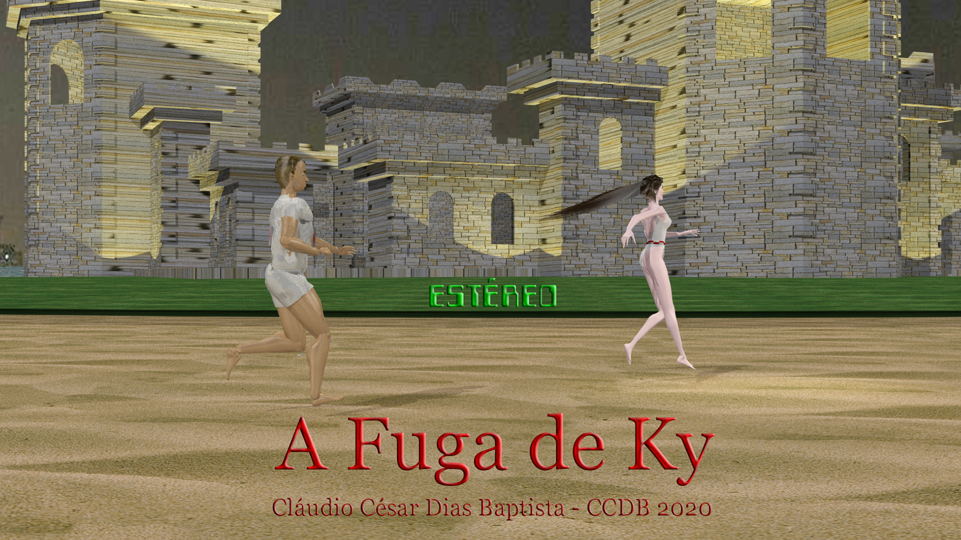 “A Fuga de Ky” é a música da animação “Ky dança a Fuga de Ky” e NÃO serve, além de pela arte in se, para temporizar, sem plágios, essa animação, em computação gráfica: DIFERENTE DE VÁRIAS ANIMAÇÕES E MÚSICAS DE MINHA AUTORIA, onde precisei adotar o andamento e os compassos de obras alheias para balé (SEM PLÁGIOS, COM MELODIAS MINHAS E DIFERENTES), nas quais bailarinas e bailarinos famosos desempenham o seu papel (a partir do qual produzo o rotoscope); em “A Fuga de Ky” CRIEI A PARTIR DO NADA, SÓ DA MINHA MENTE, A ANIMAÇÃO ANTES DA MÚSICA. Depois de feita a animação completa, só então compus a música, seguindo exatamente o ritmo dos passos de Ky, mas não o dos passos de Clausar, porque, como narro no livro Géa, Ky corre desafogada, fácil, tal qual dança nos palcos do Cosmo inteiro e além - todavia Clausar, que a conhece como Ansata e não sabe ser sua filha Ky; apaixonado, corre aos trancos e barrancos e até cai durante a prova - e ambos continuam a correr muito além do ponto de chegada, rumo ao Planetário do Ibirapuera (pois a competição se dá em São Paulo e os dois geóctones passam por terráqueos), para furtarem duas motocicletas: um chopper Harley Davidson e uma Egli Vincent (H.R.D. Vincent 1000cc aprimorada) - O som do helicóptero representa o daquele que consta da narrativa no Livro, a queda de Clausar também faz parte da descrição no Livro e o trecho suave, que atenua a percussão dos passos e o ruído da platéia, simboliza (com o tema da Sinfonia Incestuosa Clausar e Ky) o momento quando Clausar e Ky (Ansata) se olham pela vez primeira nos írios (olhos) durante a competição. O Livro Oitavo conta com primor o resto da história....