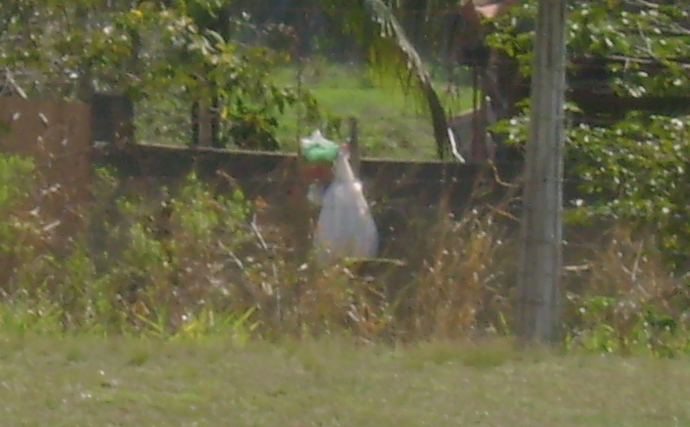 O recorte abaixo, ampliado e também sem retoques, serve para vermos que a Santa não é pessoa física nem materialização de espírito; sim, tão-somente, o lixo que a vizinha colocou na plataforma.