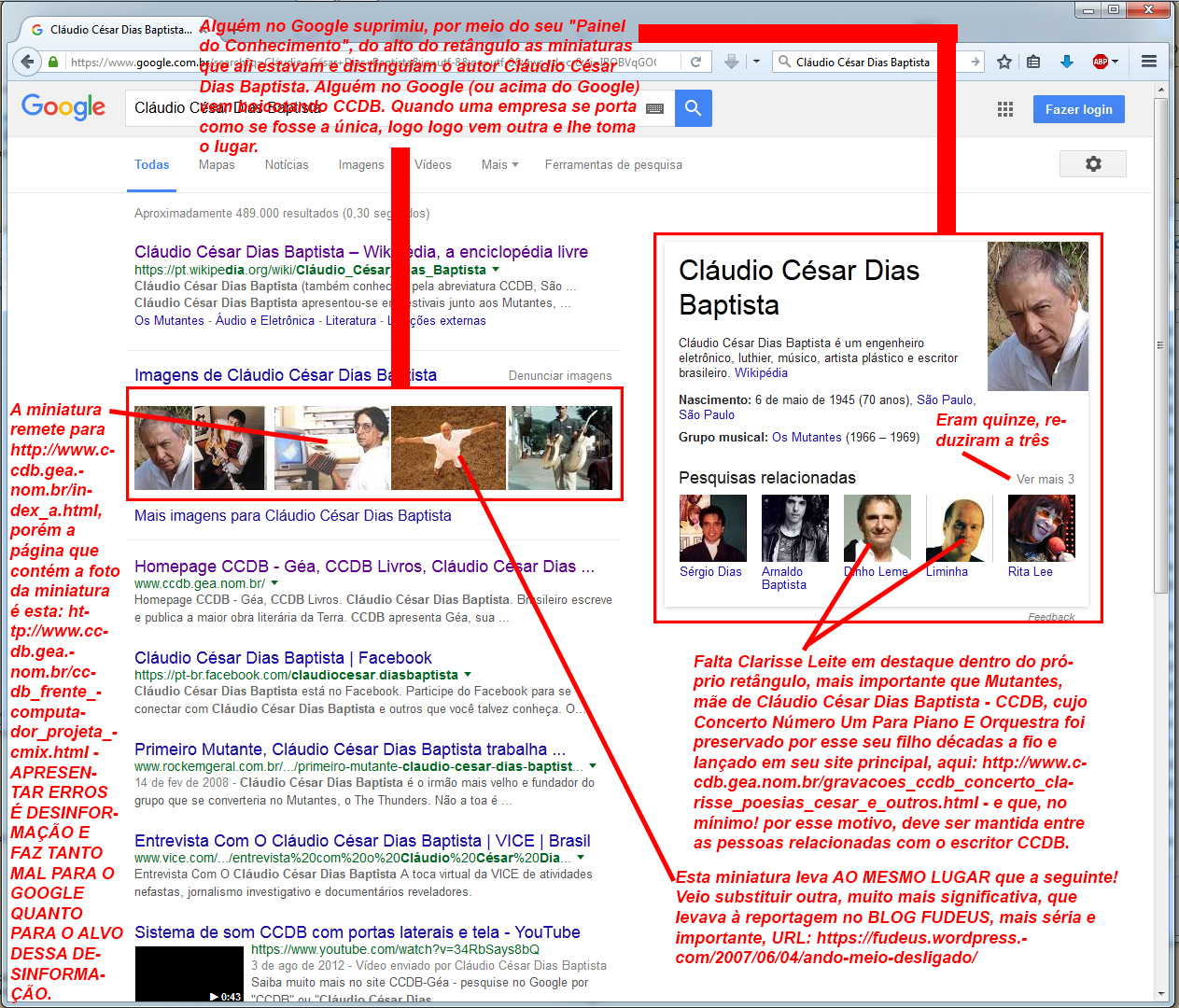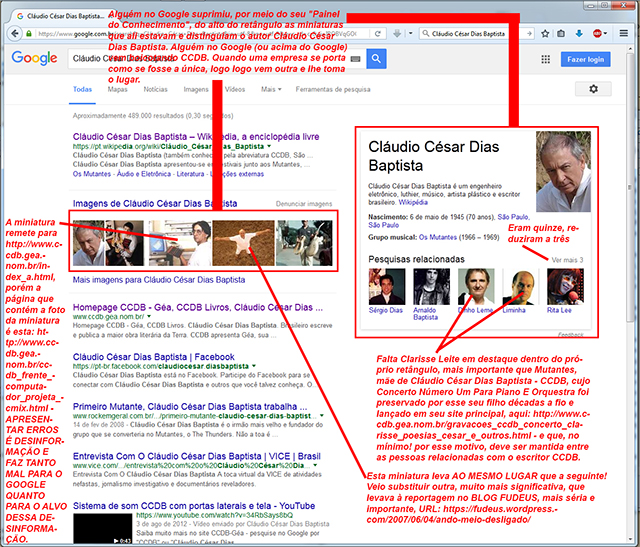GOOGLEPALHAÇADAS NO RESULTADO DA BUSCA POR "CLÁUDIO CÉSAR DIAS BAPTISTA". MAIS BOICOTE VOCÊ LÊ SOB O TÍTULO QUE CONTÉM A PALAVRA "CENSURA", AQUI: http://www.ccdb.gea.nom.br/links_para_as_paginas_mais_visit… - POR QUE TANTO BOICOTE? - POR QUE É BOM E PODE MUDAR AS COISAS!!! Clique na ilustração abaixo e depois na setinha de duas pontas, para ver em tela cheia e poder ler os textos. APESAR DO BOICOTE, A VISITAÇÃO DOS SITES CCDB EXPLODE (ver publicação imediatamente abaixo).