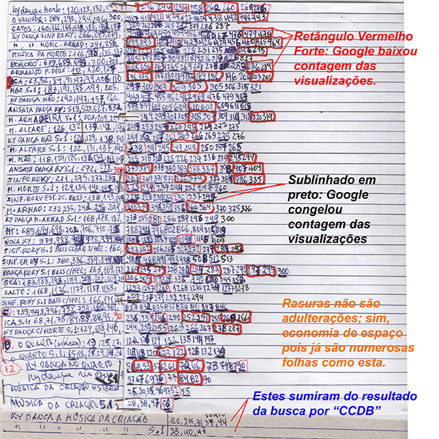 Cláudio César Dias Baptista As últimas entradas na lista da imagem acima são de hoje - note que a maioria imensa dos vídeos teve a contagem das visualizações baixada e que dois deles não aparecem nas buscas por "CCDB" via Google.