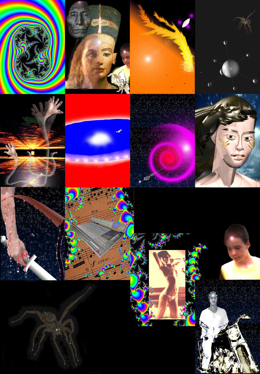 Se Você veio da página Se não acredita pra ver cá a estrela no ocelo (pequeno olho) direito da Constelação da Telária, olhe-a logo acima deste parágrafo, no canto inferior esquerdo da capa do Livro Treze (Glossário Geóctone): é o astro mais brilhante. Para observar melhor a constelação no fundo negro, por favor aumente o brilho (bright) de seu monitor... e não se assuste! Para voltar ao mesmo ponto da página Se não acredita, clique AQUI! Se Você veio duma das dezoito saídas da página Resenha e público-alvo para cá e lembra a senha (o número) para tomar o caminho de volta ao ponto certo da leitura, clique num dos números a seguir: 1, 2, 3, 4, 5, 6, 7, 8, 9, 10, 11, 12, 13, 14, 15, 16, 17, 18. Caso não se recorde da senha, os mesmos caminhos estão abertos e explicados no rodapé desta página. A foto do jovem acima da capa do Livro Doze faz parte da capa do Livro Segundo e surge novamente para harmonizar a capa do Livro Treze. Não é, portanto, uma capa em si. Idem a figura da telária (uma espécie de aranha extraterrestre), bem suave no canto inferior esquerdo: consta da capa do Livro Quarto e representa a Constelação da Telária, por onde o personagem Clausar e muitos outros viajam, ao longo da obra Géa. O desenho da capa do Livro Primeiro de Géa é um fractal. Esse fractal é exatamente o mesmo produzido pelo comando "- Fractalizar!", surgido de fonte então ignorada, no capítulo desse livro onde Clausar e o bio (inda sem nome) enfrentam o hurakyklôn (um furacão de seu planeta) coa Laranja. Se os dados técnicos fornecidos nesse capítulo forem colocados num programa o qual produza fractais, o desenho acima surgirá. O mesmo desenho representa outrossim o próprio hurakyklôn, bem como simboliza o Pluriverso (Universo formado de subuniversos) do Teorema de Clausar; sendo o "Nada Absoluto" a região central negra do fractal e os subuniversos cada réplica fractálica encontrada no interior do desenho. Embora sugira um redemoinho, esse fractal não se parece com o "vórtice" dos capítulos finais do escrito Géa, pois o vórtice é falciforme. A capa do Livro Doze, e outras onde certo fundo mui estrelado aparece, contém um estereograma dentro desse fundo. Tal estereograma foi criado pelo autor de Géa.