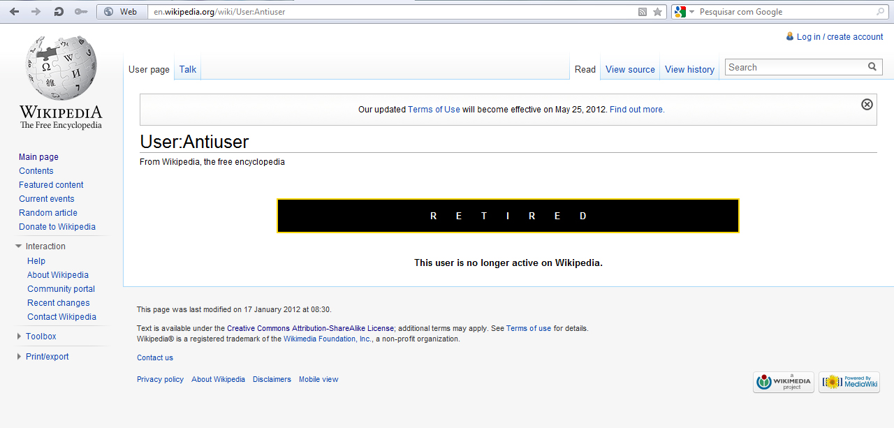 Eis o que se achava na página de usuário de Antiuser, na En Wiki: Hi, I'm '''antiuser''', also known in the real world as Adriano. I'm a [[Brazil|Brazilian]]-born [[Italy|Italian]] who lives in [[Seattle]], [[Washington]], [[United States]]. O próprio Antiuser eliminou esse dado de sua página em 27 de Junho de 2011 mas você poderá encontrá-lo se entrar em sua “User Page” e comparar o conteúdo atual com o da revisão dessa data. Pergunto: quem nasce no Brasil é o quê? Italiano? Brasileiro? Quem mais atacou as páginas “Cláudio César Dias Baptista” e “Géa” na En Wiki é o quê? - CCDB 30-06-2011 e 03-07-2011 LEIA TAMBÉM “CCDB NA PT WIKI” Não deixe de ler, AQUI, a continuação dos ataques a minha obra e a minha pessoa. O cenário desses ataques mudou-se para a Pt Wiki. - CCDB 12-08-2011 Em Janeiro de 2012 um ataque veio de IP localizado nos EUA. Será coincidência a origem desse ataque ser a mesma dos que se deram contra a página de meu nome e a página “Géa” na En Wiki? Veja aqui!