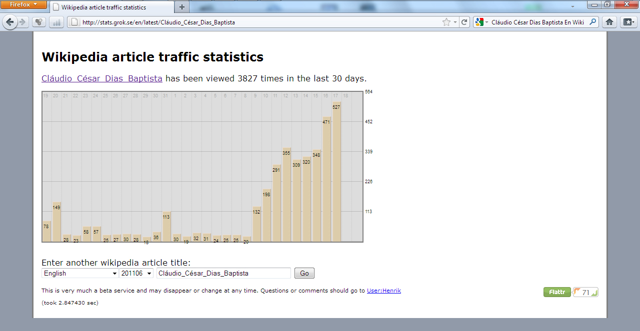 ESTATÍSTICA DA PÁGINA “CLÁUDIO CÉSAR DIAS BAPTISTA” NA EN WIKI
