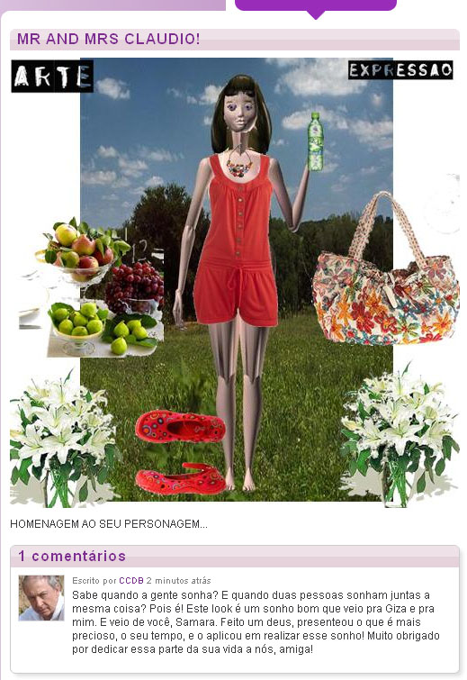 Estamos super felizes, Dalgiza e eu, pelo "look" que você criou - e sabemos que o fez do fundo do coração, Samara! Obrigado!!! CCDB - 08-11-2009 |