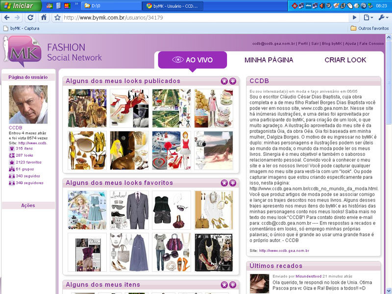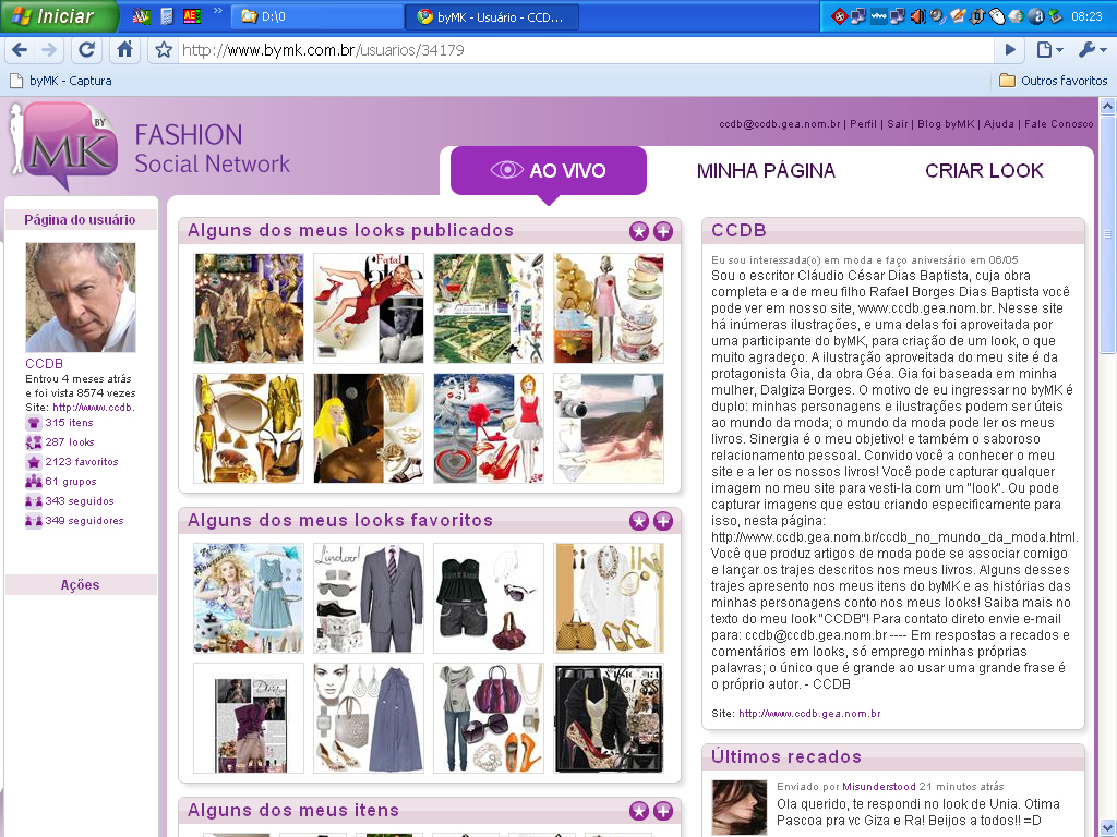 LOOKS e os consagradores COMENTÁRIOS de TERCEIROS sobre as HISTÓRIAS extraídas dos LIVROS DE CCDB que se acham sob os looks criados por CCDB que comprovam o GRANDE SUCESSO de CCDB no byMK.