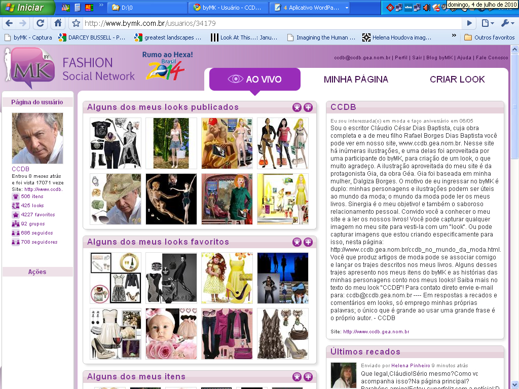 Veja no próprio byMK os LOOKS e os consagradores COMENTÁRIOS de TERCEIROS sobre as HISTÓRIAS extraídas dos LIVROS DE CCDB que se acham sob os looks criados por CCDB que comprovam o GRANDE SUCESSO de CCDB no byMK.
