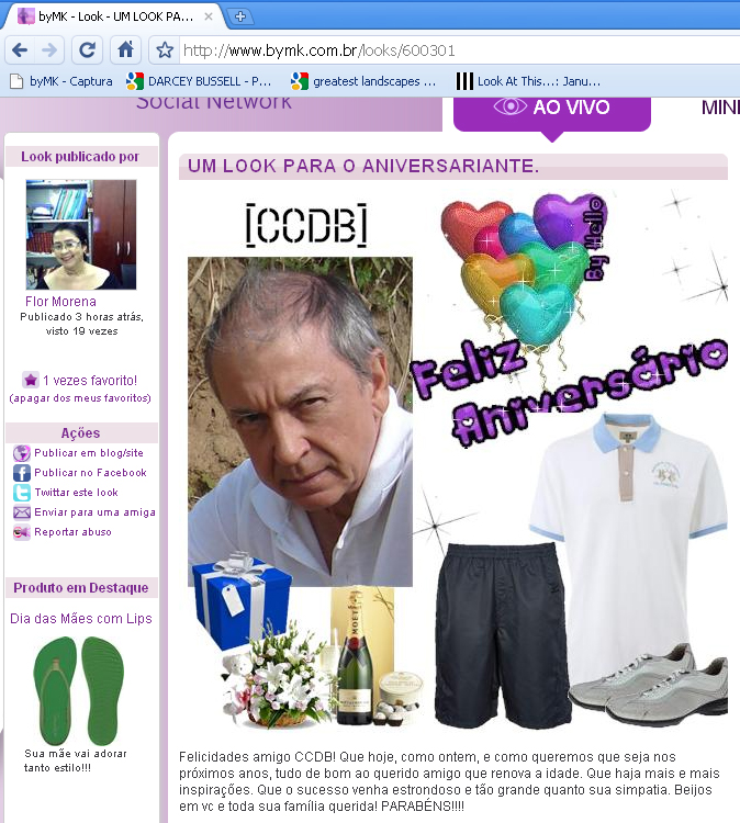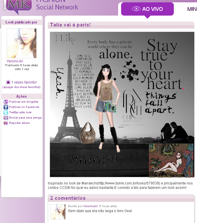 O melhor meio de conhecer esse sucesso, porém, é nas páginas interativas do byMK, que agora mudou de site e se chama FASHION.ME. Entre no byMK por meio deste link http://www.bymk.com.br/usuarios/ccdb e será redirecionado para a minha página, no FASHION.ME - ou entre direto na minha página, no FASHION.ME, por meio deste link: http://fashion.me/users/ccdb. Estando na minha página de usuário, clique no link para ver os meus looks e confira!