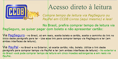 Clique no link logo acima ou na miniatura à esquerda para viajar pelas páginas de CCDB Livros que explicam tudo sobre a navegação e a compra de tempo de leitura.