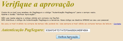 É facílimo usar o código: depois da primeira vez que você o copiar do e-mail do PagSeguro para o campo de Autenticação (o campo que se vê na miniatura acima e melhor no filme), esse código será lembrado e bastará digitar o primeiro número ou letra do código para que apareça inteiro no campo - então é só clicar no botão “Verificar Aprovação” e ler! - ou pode criar um arquivo com o Bloco de Notas, colocar o código e deixar na Área de Trabalho, para copiar e colar no campo.