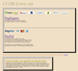 No filme que roda por meio do link acima você assiste à compra de tempo de Leitura via PagSeguro - o filme termina quando se abre a página do PagSeguro, para a rotina de compra, auto-explicativa. Essa rotina varia conforme o browser que você usa e conforme a época em que o PagSeguro a remodela;: pode começar pedindo o CEP (como no filme) ou pedindo o seu e-mail - em todos os casos a rotina do PagSeguro é facílima de seguir. Após a compra, você volta automaticamente - ou sob seu comando - à página de retorno em CCDB Livros.