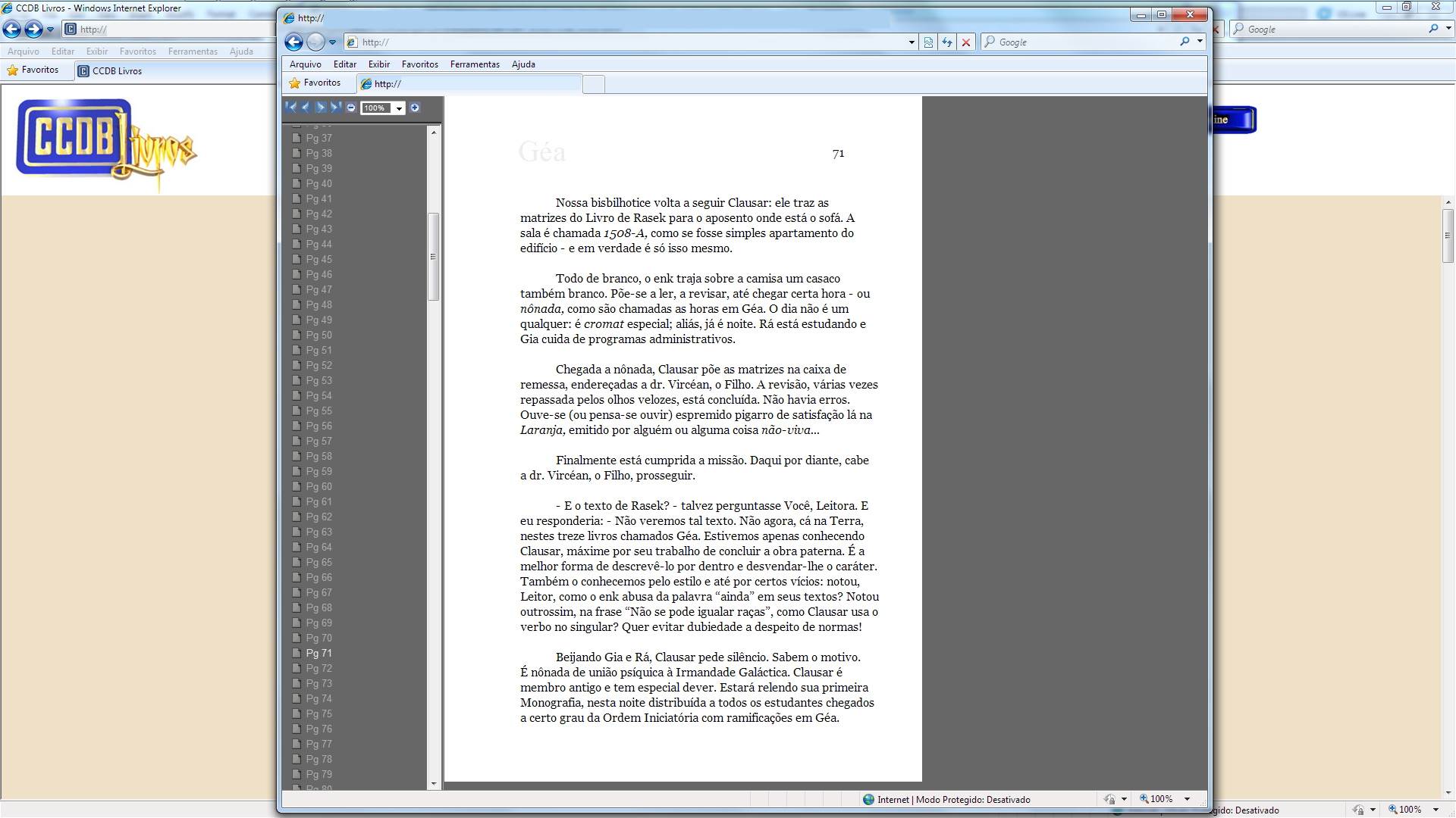 No uso prático, durante a leitura de qualquer livro em CCDB Livros, a qualidade da imagem é muitíssimo maior do que a apresentada em todos os filmes de demonstração (ainda maior do que a mostrada por meio do link “qualidade da imagem” logo acima, mesmo que você utilize a lupa do browser para exibir “o tamanho real”).