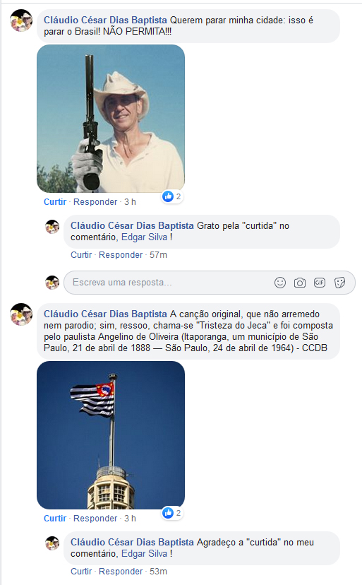 Publicação de CCDB em sua página do FACEbook* em 05-05-2020