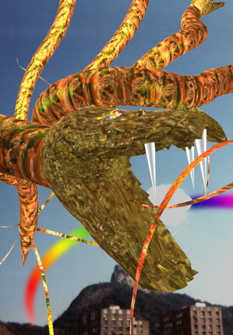 muco sobre a ponta da boca rasgada, capaz de engolir montanhas.