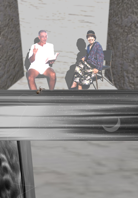 Na ilustração acima, Clarisse (a minha mãe) interpreta a mãe; e eu, o filho.