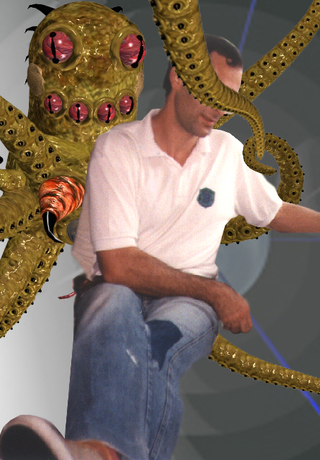 Na ilustração, meu amigo Doudou representa o papel de Douod, entre os tentáculos
