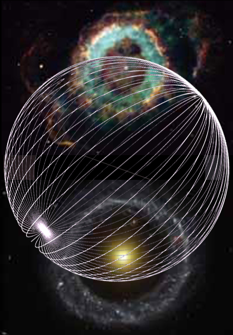 firmamento globular crescendo e expandindo-se, dentro da ilusória