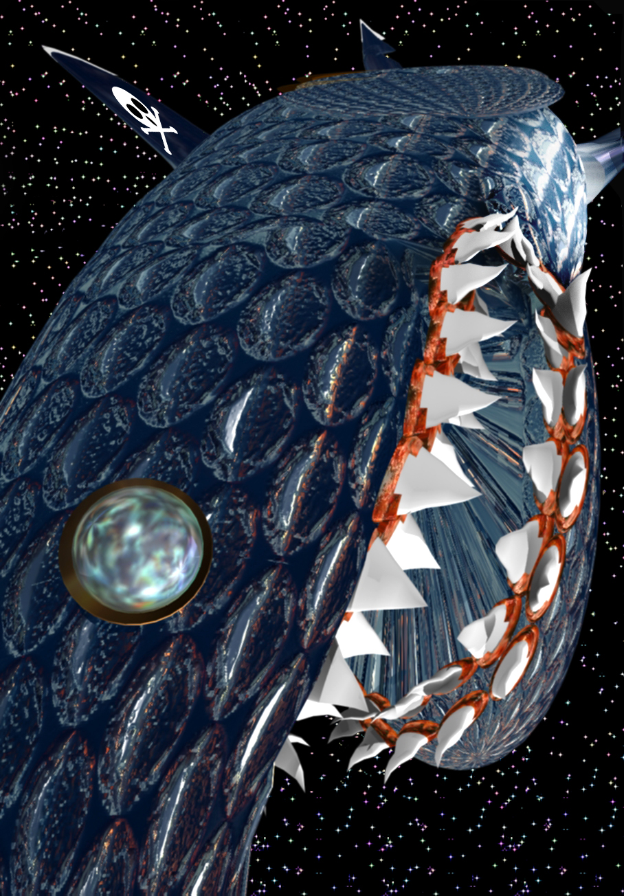 Na ilustração do próprio livro, o olho da nave pirata Trigonodon possui outra imagem dentro,