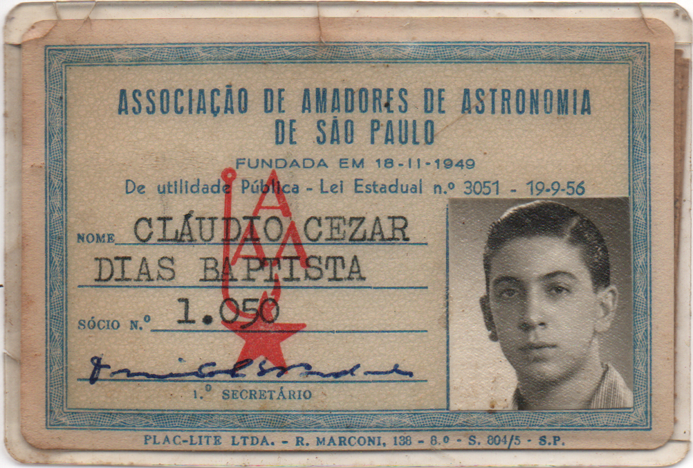 Acima, foto da minha carteira de membro da Associação de Astrônomos Amadores de São Paulo (AAASP). Grafaram errado o meu nome; porém, César com Z ou com S, meu amor pela astronomia é o mesmo, assim como também pelo Brazil ou Brasil.