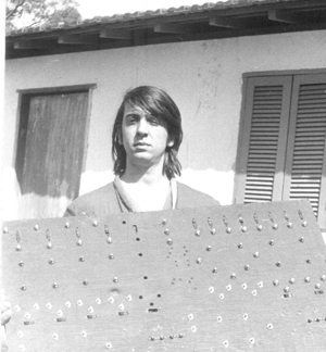 Na foto da direita, você me vê também na Serra da Cantareira, numa data anterior ao da foto da esquerda, antes de construída a casa em nossos terrenos. Esta foto foi batida em 1972 por Pena Schmidt, e é do painel da mesa CCDB tetrafônica que aparece durante a montagem e completa, em fotos nesta mesma página, mais acima.