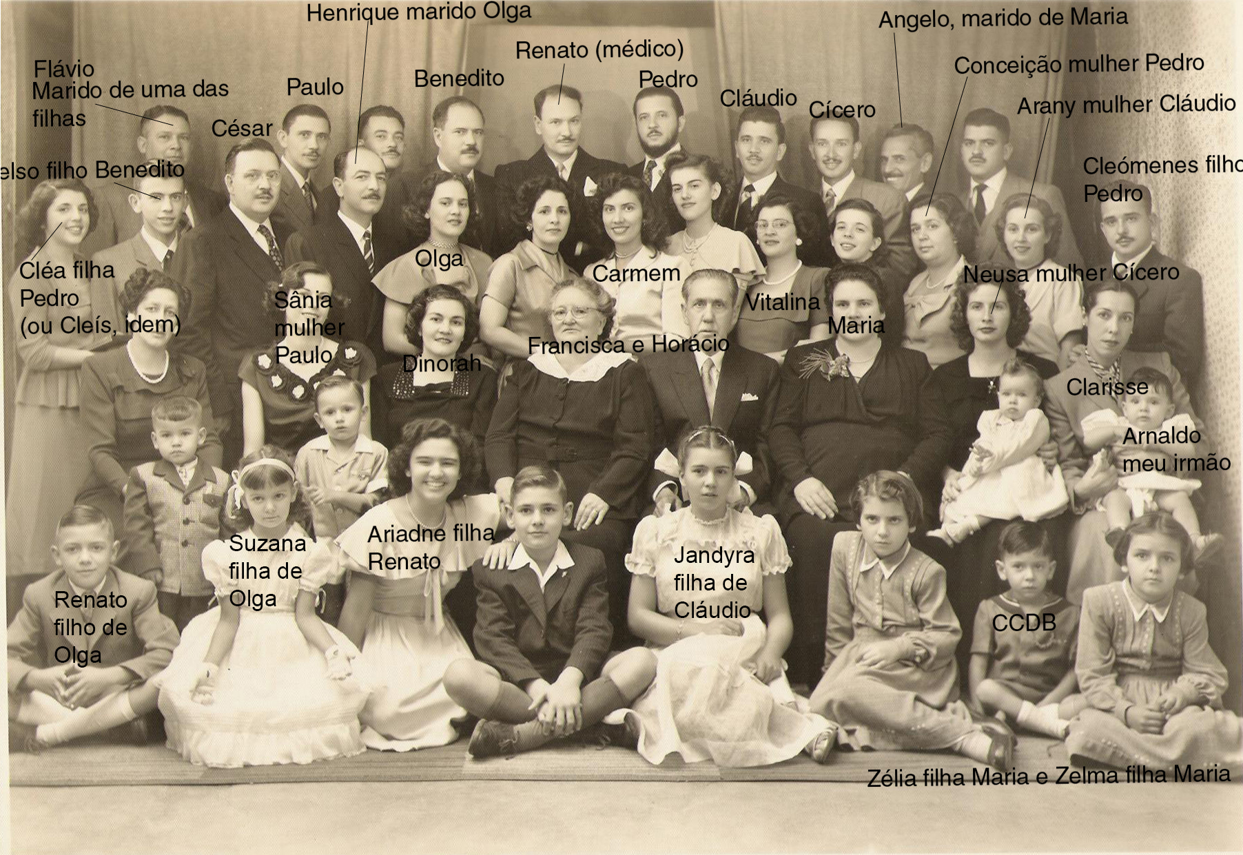 Como não sei o endereço de todos esses parentes (alguns dos quais já passados pela transição) ou de seus herdeiros, caso algum não queira sua imagem (ou a de seus pais) e o seu nome neste site, por favor me avise pelo endereço de contato, que apagarei (apenas) essa imagem e nome, na foto. Se algum nome estiver errado, por gentileza, corrijam-me. - CCDB