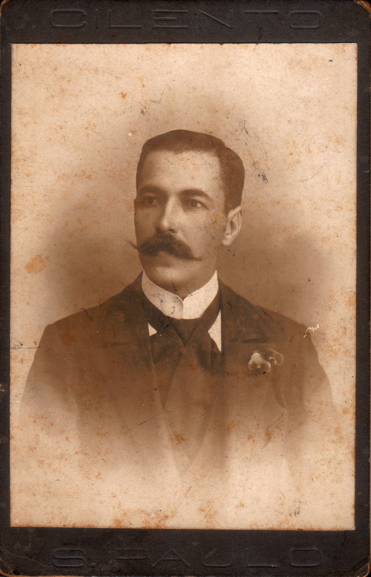 Na foto acima, temos Laurentino Mendes de Moraes, meu bisavô pelo lado materno. Você pode ver essa mesma foto com máxima resolução (JPG 690KB) se clicar sobre ela. Laurentino nasceu em Paraibuna, SP e faleceu aos noventa e quatro anos. Músico emérito, chefiou uma banda, na qual tocava tuba. É o avô materno de minha mãe, Clarisse Leite Dias Baptista. Filhos de Laurentino: Benedita (pianista), Alda (professora), Maria Aparecida (chamada por todos de "Pequena" - que conheci inda viva. Pequena era mulher alta e bela - talvez o apelido lhe caísse bem justamente por isso... Em criança, eu adorava os doces de chocolate chamados de "esqueleto" que ela fazia...), Adília, Maria da Penha (Mariquita), Orlando Mendes de Moraes (professor, vários livros didáticos, casado com Antonieta Pantoja de Moraes) e Judith Borges de Moraes Leite (professora, primeira a introduzir o método analítico no Brasil, trazido por Miss Browne, sua professora. Judith era minha avó materna e aparece em Geínha, uma das insignes protagonistas). Laurentino teve mais filhos, num total de treze, mas não lhes sei os nomes. Atrás dessa foto e das outras dos meus ancestrais do lado materno há dedicatórias deles próprios, com mais informações e nomes de parentes.