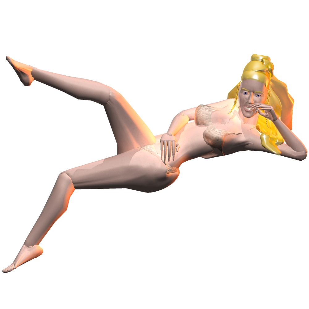 Gia tem os olhos móveis e suas córneas possuem refração de acordo com as leis da física, no "boneco" tridimensional que para ela criei no computador. Todos os membros, inclusive dedos, falanges - tudo tudo - é também móvel neste ente de computação gráfica. O nariz de Gia já forma uma só peça com a face (ao contrário de em meus "bonecos" mais antigos - o de Arquisha, por exemplo), porém os seus cabelos não se compõem de fios separados (como nos "bonecos" mais recentes, verbi gratia: Rá, Talia e Terúlia).