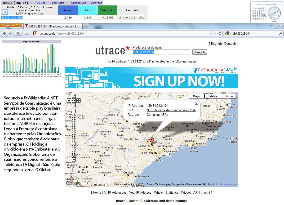 Dia 18-11-2011, houve uma visitação fortíssima neste site, acusada pela estatísitca do Awstats. Eis a origem dessa visitação, que ocorreu ao mesmo tempo em que o Google retirou (novamente), da página de resultado da pesquisa sobre a sigla "CCDB", os links "Exibir mais resultados de gea.nom.br" e "Exibir todos os resultados de gea.nom.br", o que tende a reduzir a visitação deste site (www.ccdb.gea.nom.br): Fatos Curiosos
