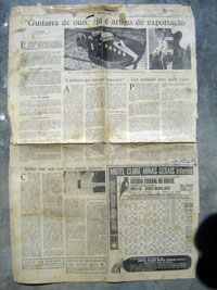 Esse magnífico Instrumento, tema de reportagem de página inteira na Folha de São Paulo (ver foto, mais abaixo nesta página), foi violado, modificado, usado como “contrabaixo” apesar do cabo de comprimento inadequado para quatro cordas, pois o tinha intermediário entre o da guitarra e o do contrabaixo – que eu também manufaturava, com o cabo de comprimento certo.