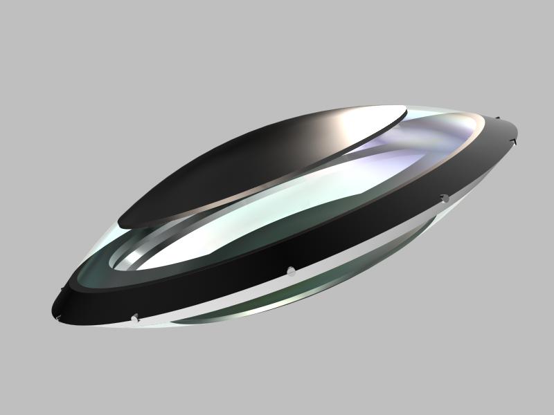 Na figura abaixo vemos a Laranja mais obliquada, sem o piso, o teto, nem as capas que cobrem o volante.