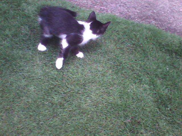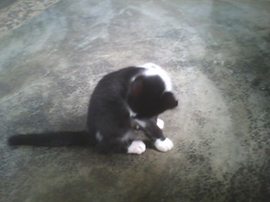 Certa vez, quando Kimê brincava com Giza e eu naquele colchão, ameacei um ataque contra ele com uma das mãos, então com a outra; Giza fez o mesmo; e, quando Kimê estava decidindo qual mão atacar primeiro, ameacei-o com um e depois com o outro pé! Oh... foi muito pra ele e; como num desenho animado, mas no mundo real; deu alguns saltos mui altos, correu até o piso entre o colchão e a parede e lançou-se deitado no chão com as quatro patas movendo-se no ar, abriu uma grande boca, com a língua pra fora e começou a oscilar a cabeça de um lado para o outro, como se dizendo que não podia entender nem suportar tantos atacantes (isso ele faria quando fosse um gato adulto...) e que estava louco! A melhor parte é ser verídica a história! Ele agiu exatamente como contei - ou até melhor, porque o meu inglês está me atacando por seis lados; e eu, um pequeno gato em sua língua, desisto de descrever o que não posso...