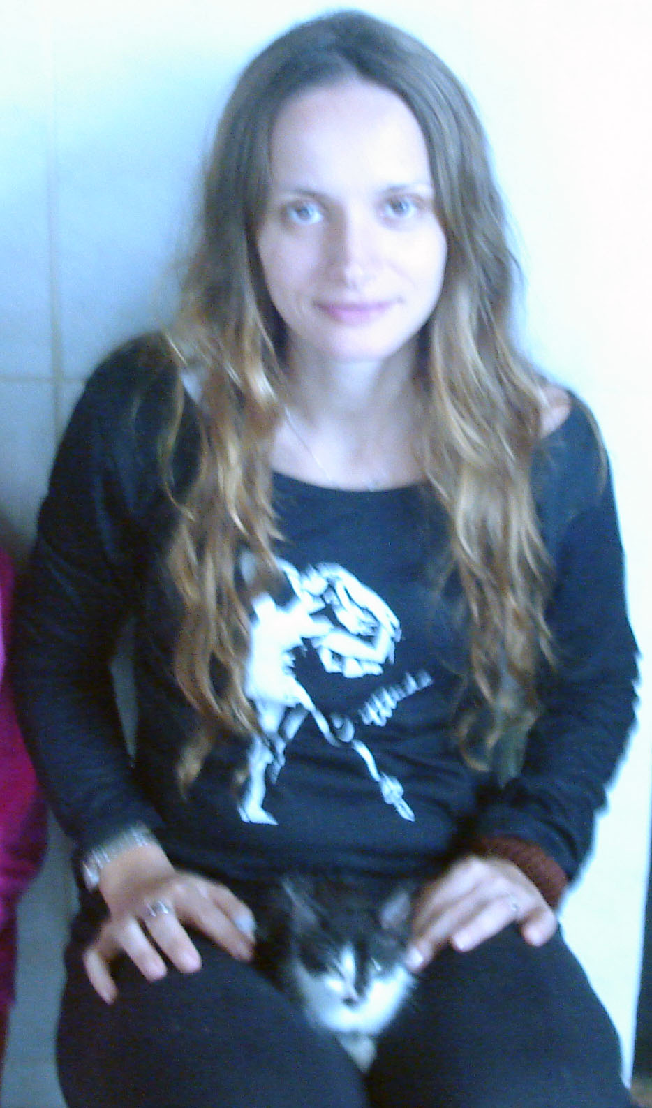 Ela não aceita fácil a presença de Kimê; mas o gato é tremendamente insistente, uma pequena maravilha branca-e-preta; portanto, ela está dia a dia mais relaxada em mantê-lo à distância com os seus chiados dela...
