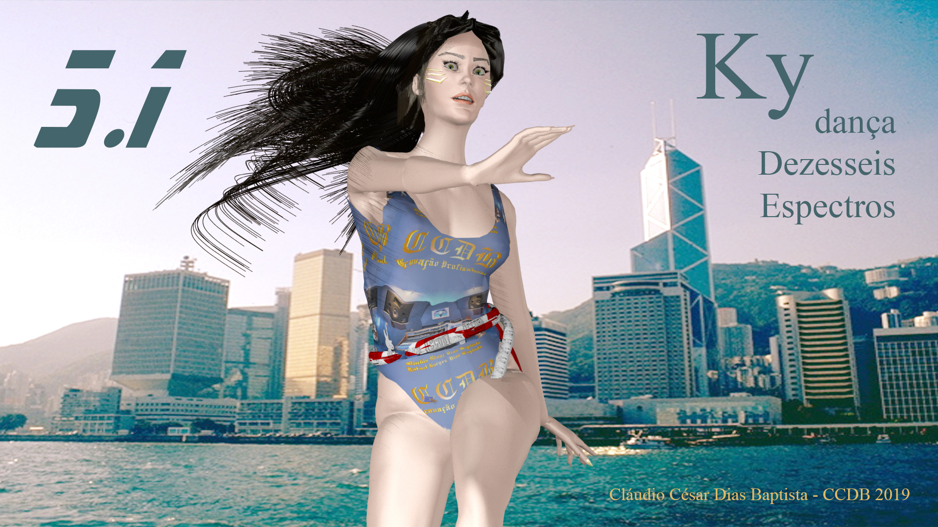 A única personagem que dança em “Ky dança Dezesseis Espectros”, versões estéreo e 5.1, é Ky.O Fantasma de Nysio Degan, pode raro ser vislumbrado e dança sem o lençol nesta animação: apresenta-se feito uma luz violácea cruzando o ar. No final da dança “Ky dança O Asteróide” (sic), APARECE PELA PRIMEIRA VEZ COM SEU CORPO ESPIRITUAL! Conheça de perto tais personagens e a mim próprio (CCDB) no único lugar onde estamos de verdade: na leitura completa de Géa, )que(, Geínha e CCDB - Gravação Profissional.