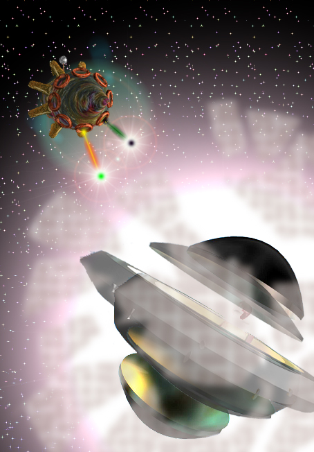 teia de captura, as partículas são atraídas pela massa da Laranja,