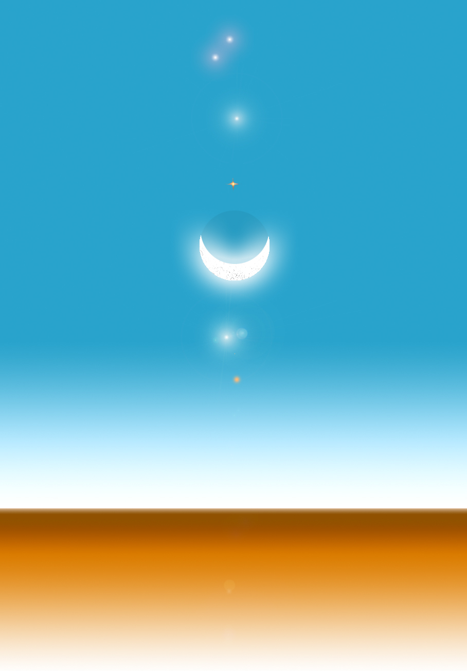 dos planetas no céu do mundo Géa. De baixo para cima, apresentam-se: