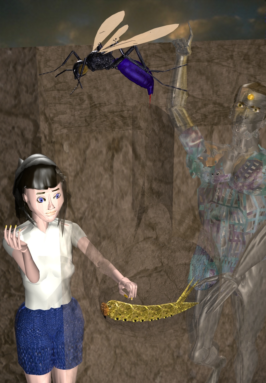 Talia leva Posenk ver uma larva de belbellita gigante. As belbellitas são as borboletas do planeta Géa; porém, estas aqui vivem e voam debaixo do chão.