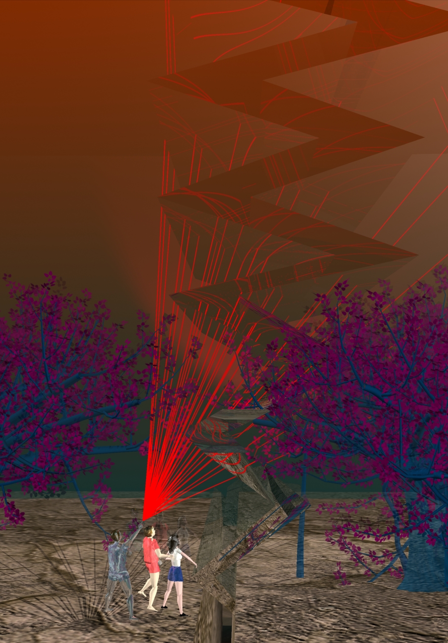Posenk lança raios vermelhos na rachadura do ar, para estudá-la.