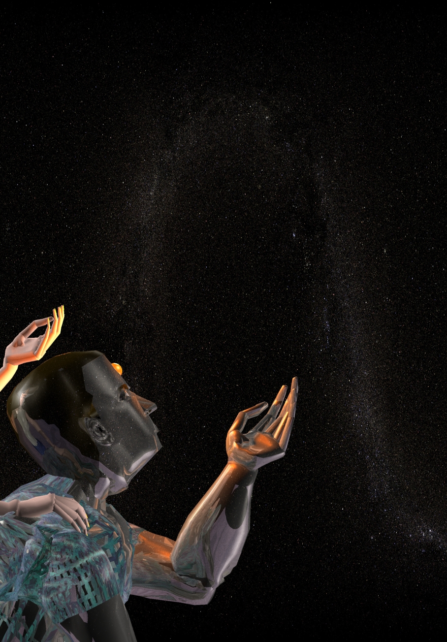 Atrás de Posenk se acha a menina terráquea Talia, preocupada com a "saúde" do amigo, cuja luz avermelhada da esférula em sua testa indica o mau funcionamento.