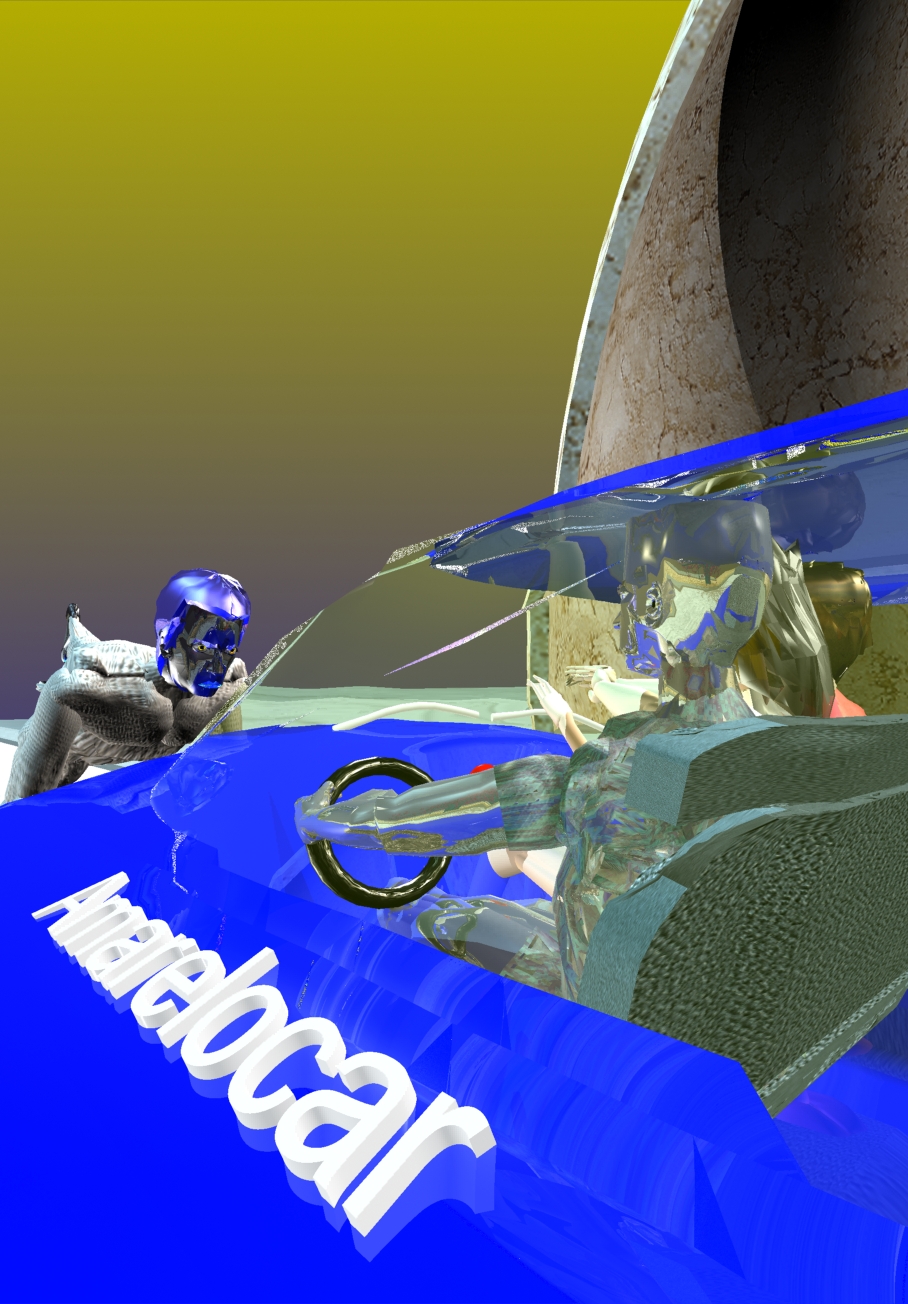 Assanhados pela ação, o grupo inteiro dentro do robotáxi roubado;
