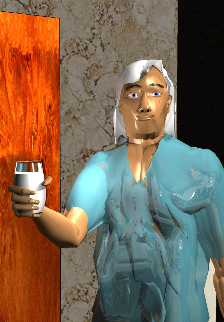 o vidro do copo, máxime o dedo mínimo.
