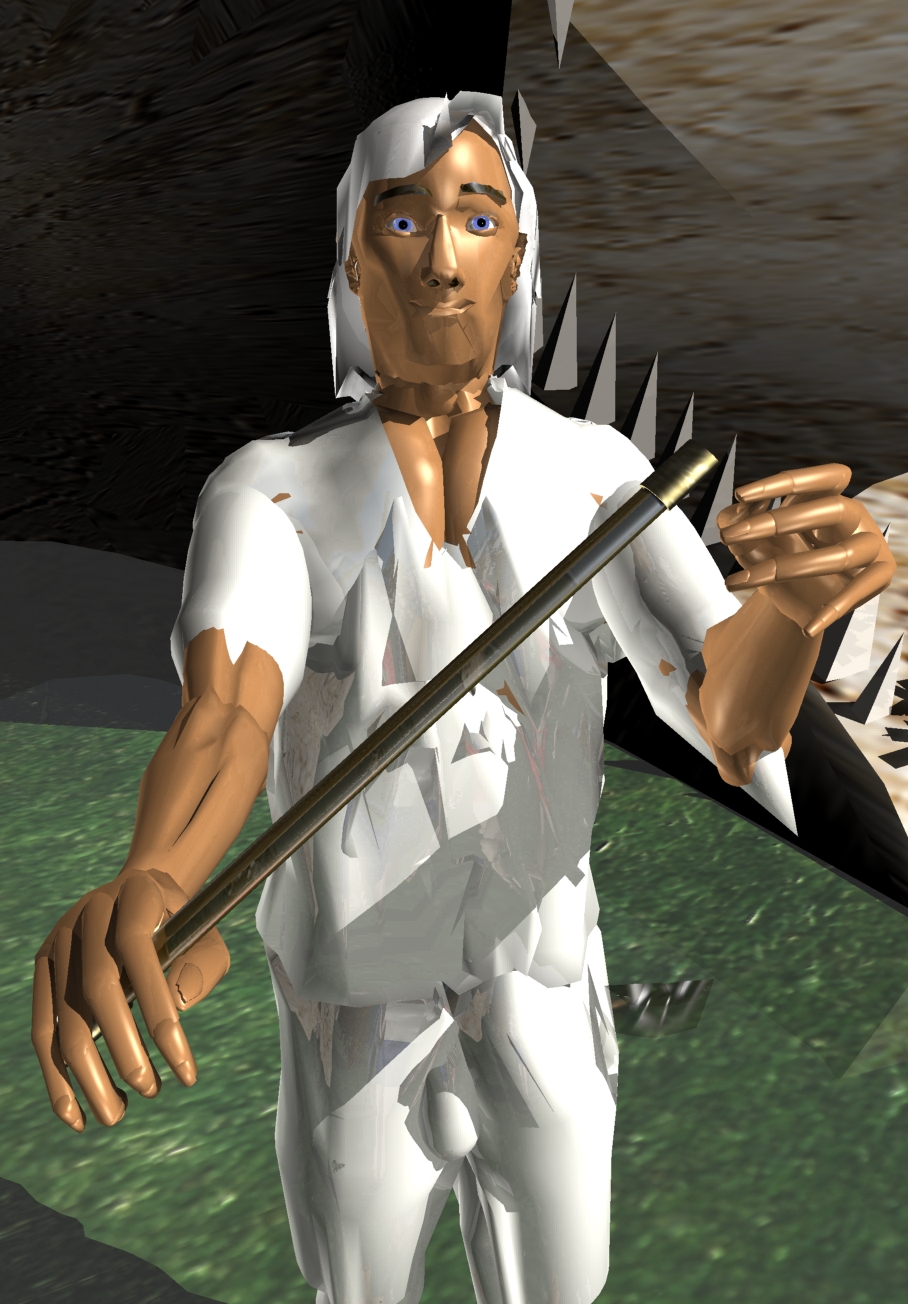 Serias Bulggo explica os recursos da poderosa vara de sua invenção,